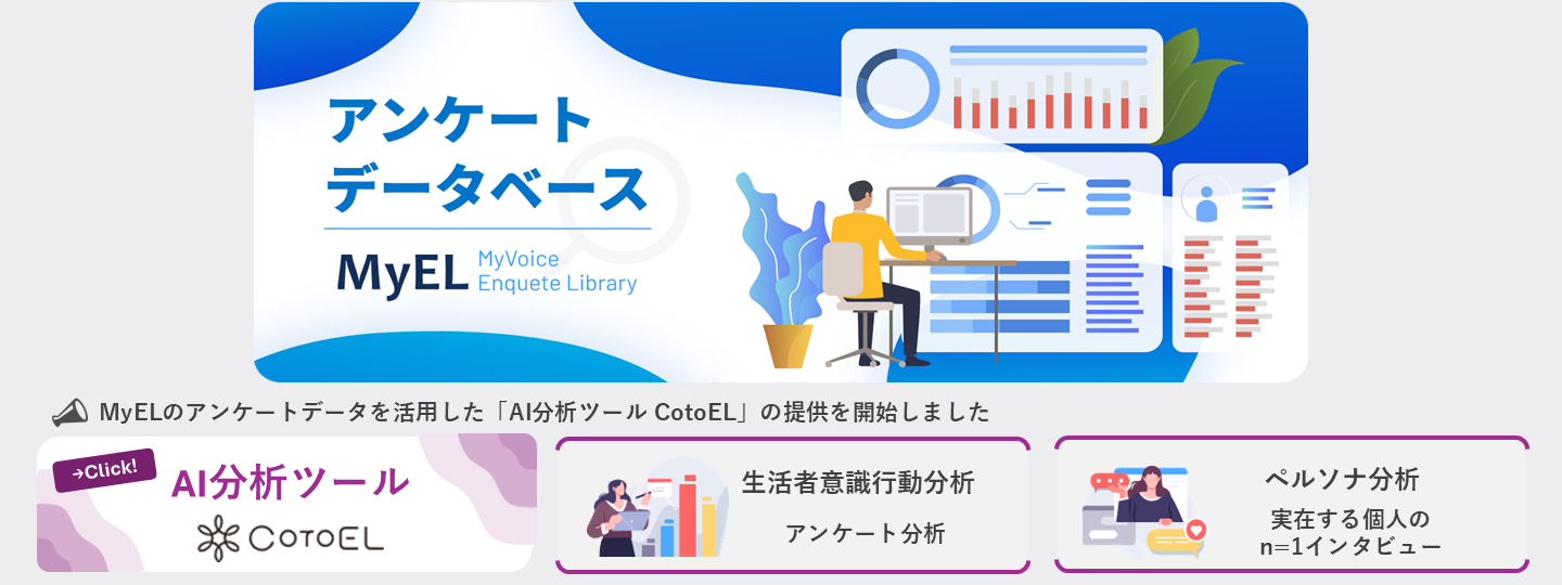 (約3,800テーマ×1万人超)を、アンケートデータベースとして提供しています。