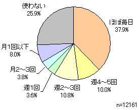 「ほぼ毎日」使う人は全体の37.9%です。女性や、20代で使用頻度が高くなっています。