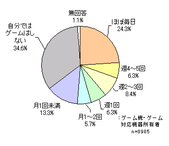 〔(ゲームができる機器のある方)あなた自身が、ご家庭やあなたご自身が持っている機器でゲームをする頻度はどのくらいですか。パソコン・携帯アプリのゲームを含めて、お答えください。〕