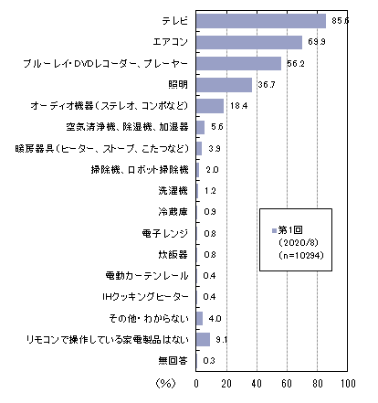 〔(全員)あなたのご自宅にある家電製品のうち、リモコンで操作をしているものがあればお聞かせください。(複数回答可)〕