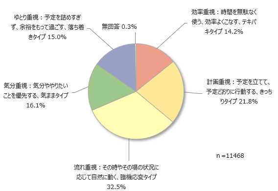 「計画重視:予定を立てて、予定どおりに行動する、きっちりタイプ」は21.8%となっています。