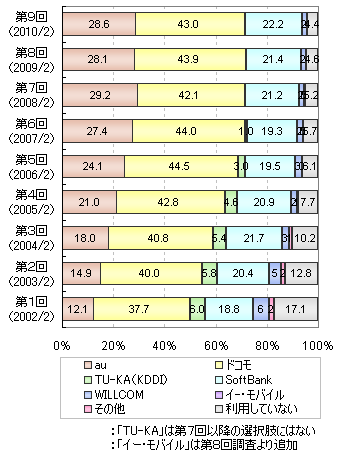〔今後、あなたが利用したいと思う携帯電話会社はどこですか?現在と同じ会社を利用したい人は、同じ会社をお選びください〕