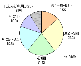 「週4~5回以上」(13.5%)、「週2~3回」(25.9%)、「週1回」(21.4%)をあわせ、60.8%が週1回以上利用しています。