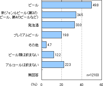 〔(ビール類を飲む方)普段飲むビール類のうち、もっともよく飲むものはどれですか〕