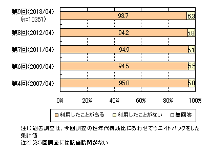「利用したことがない」は、男性10代で1割強、女性10代で2割弱です。