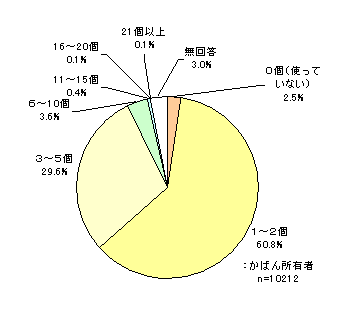 〔あなたは、自分のかばんを何個ぐらい持っていますか。お持ちのものすべてをあわせた個数をお聞かせください。〕