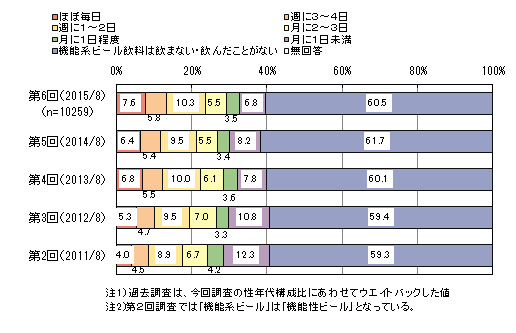 〔(全員)あなたは、機能系ビール飲料をどのくらいの頻度で飲んでいますか。〕