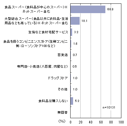 〔あなたがふだん、食料品を最もよく買うところはどこですか。〕
