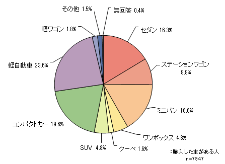 〔(購入した車がある方)あなたのご家庭で主に利用している車のタイプを教えてください。〕