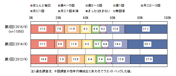 〔(全員)あなたは、お酒をどのくらいの頻度で飲んでいますか。〕