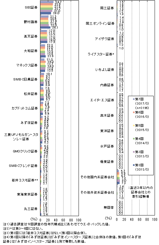 〔(直近3年以内に取引経験がある方)あなたが、直近3年以内に取引したことがある証券会社を、すべてお選びください。(複数回答可)〕