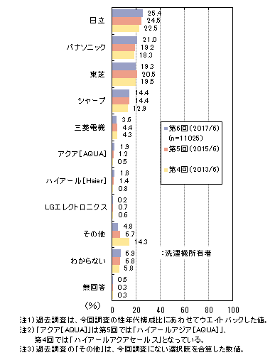 〔(ご自宅に洗濯機がある方)ご自宅の洗濯機は、どのメーカーですか。2台以上ある場合は、普段よくお使いの洗濯機についてお答えください。〕