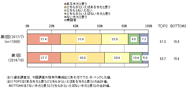 リラックスする時間がある方(「ある方だと思う」「どちらかといえばある方だと思う」の合計)という人の比率は61.3%です。
