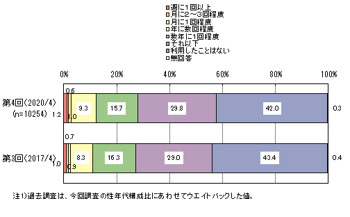利用頻度は「数年に1回程度」が15.7%、「それ以下」が29.8%です。
