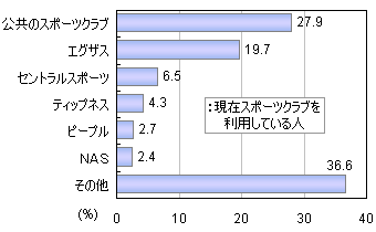 トップは「公共のスポーツクラブ」(28%)で、次に「エグザス」(20%)が続きます。