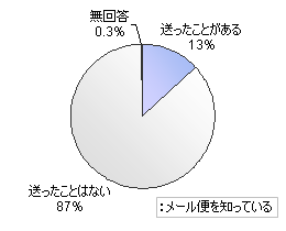 メール便で荷物を「送ったことがある」は13%です。