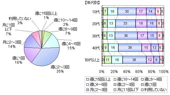 ドレッシングの利用頻度は、「週に2~3回」(35%)がもっとも多く、以下「週に1回」(16%)、「週に4~5回」(15%)と続きます。