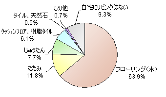 「フローリング(木)」が6割強で主流となっています。