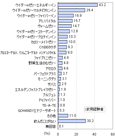 上位3銘柄は全て「ウィダー」シリーズ。最も多いのは「ウイダーinゼリーエネルギーイン」(43.2%)です。