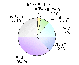 魚肉ソーセージを月に1日以上食べる人は、4割弱。また、「食べない」は25.4%です。