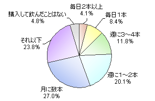 「月に数本」が27.0%、「週に1~2本」が20.1%で、週に1本以上飲んでいる人は44.4%と全体の約半数近くとなっています。